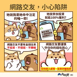 為提升全民對交友服務之正確消費觀念,內政部已製作相關宣導資料。