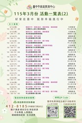 (轉知)臺中市家庭教育中心【115年3月份活動一覽表】🍃春日幸福登場🍃